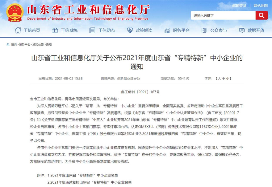 近日,山東省工業和信息化廳發布了關于公布2021年度山東省“專精特新”企業的通知,淄博太極工業搪瓷有限公司榮耀上榜。