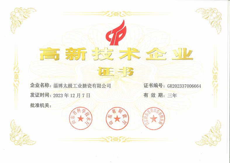 近日,淄博太極工業搪瓷有限公司被山東省科學技術廳、山東省財政廳、國家稅務總局山東省稅務局聯合認定為高新技術企業。這是對公司在搪瓷工業領域創新能力的肯定,也是對其在推動行業發展方面的認可。作為搪瓷行業的領軍企業,淄博太極工業搪瓷有限公司一直致力于科技創新和產品研發,不斷推動搪瓷技術的進步和應用。公司擁有多項核心技術和專利,其搪瓷產品在市場上具有較高的知名度和美譽度。此次榮獲高新技術企業稱號,將為淄博太極工業搪瓷有限公司帶來更多的發展機遇和政策支持。公司將繼續秉承科技創新的理念,加強產學研合作,不斷提升搪瓷產品的技術含量和附加值,為搪瓷工業的發展做出更大的貢獻。