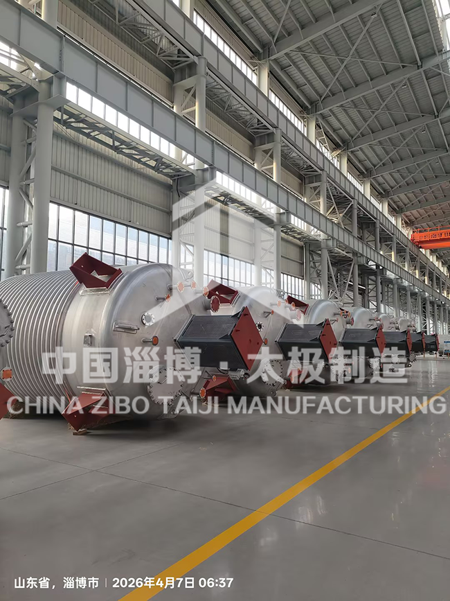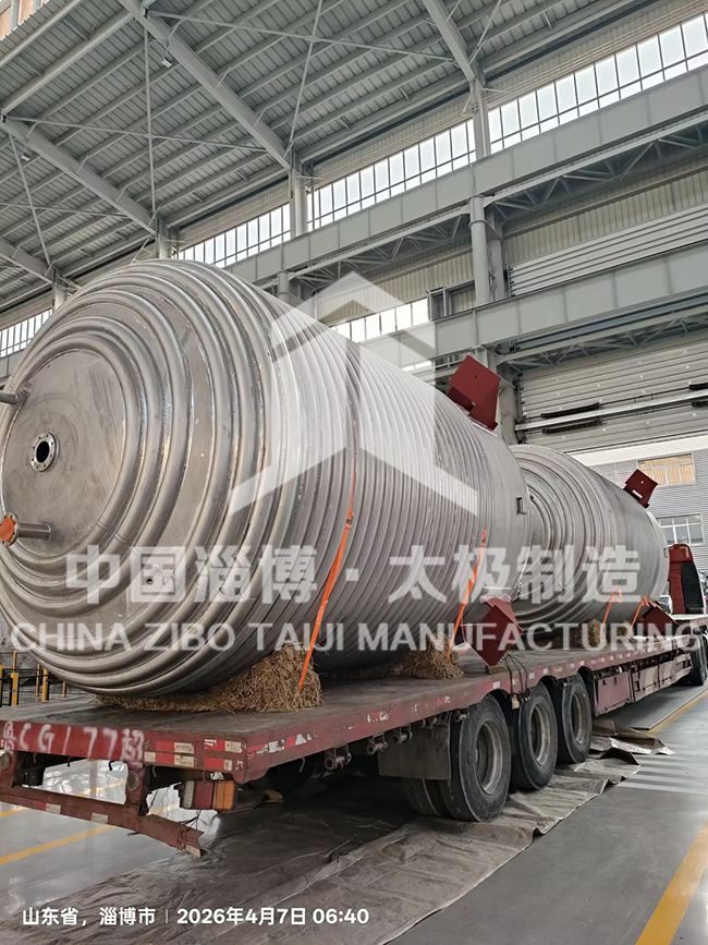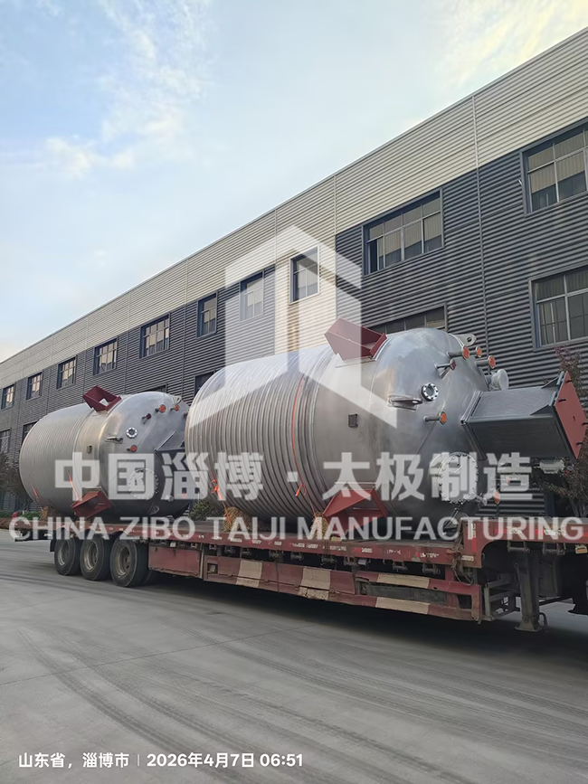近日,淄博太極特材裝備廠為客戶定制的 18 臺非標不銹鋼反應釜,一次性通過全部檢測并如期啟運,順利交付。